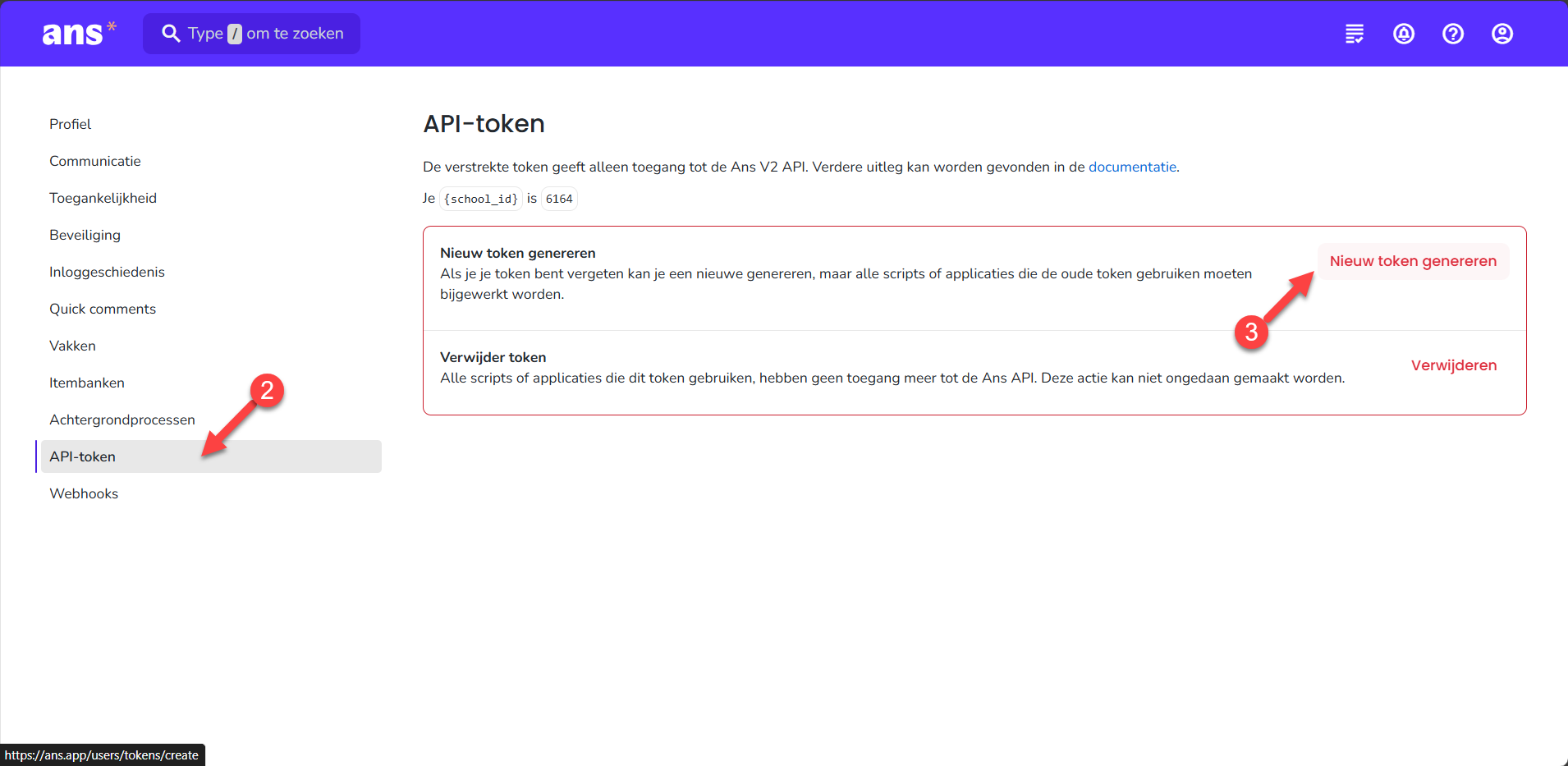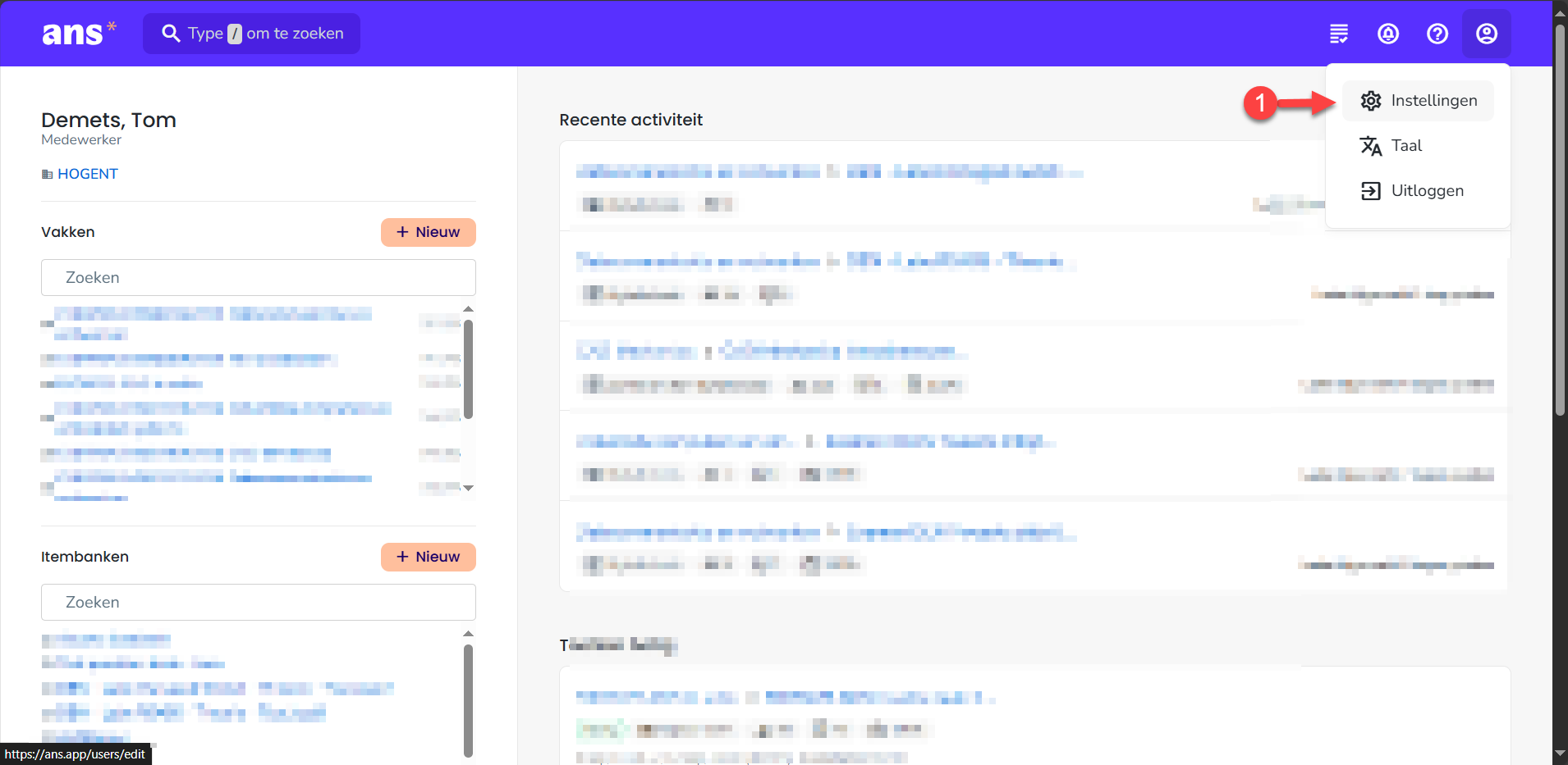 Meld je aan op Ans en navigeer naar je persoonlijke instellingen via het menu.