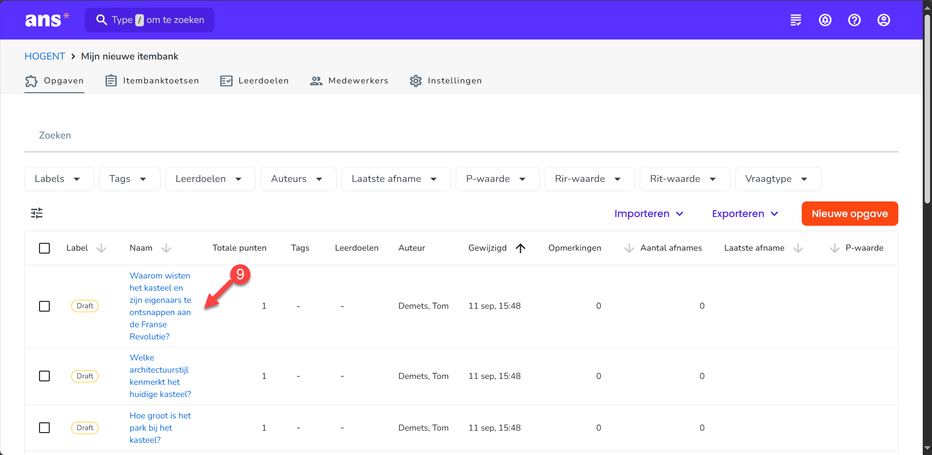 Ga naar je itembank in Ans - de vragen zouden nu geïmporteerd moeten zijn.