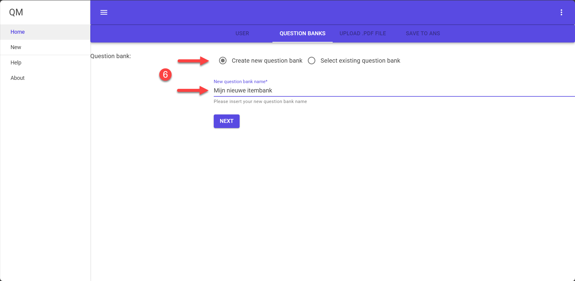 Selecteer een bestaande itembank waarin de vragen terecht moeten komen of maak een nieuwe.