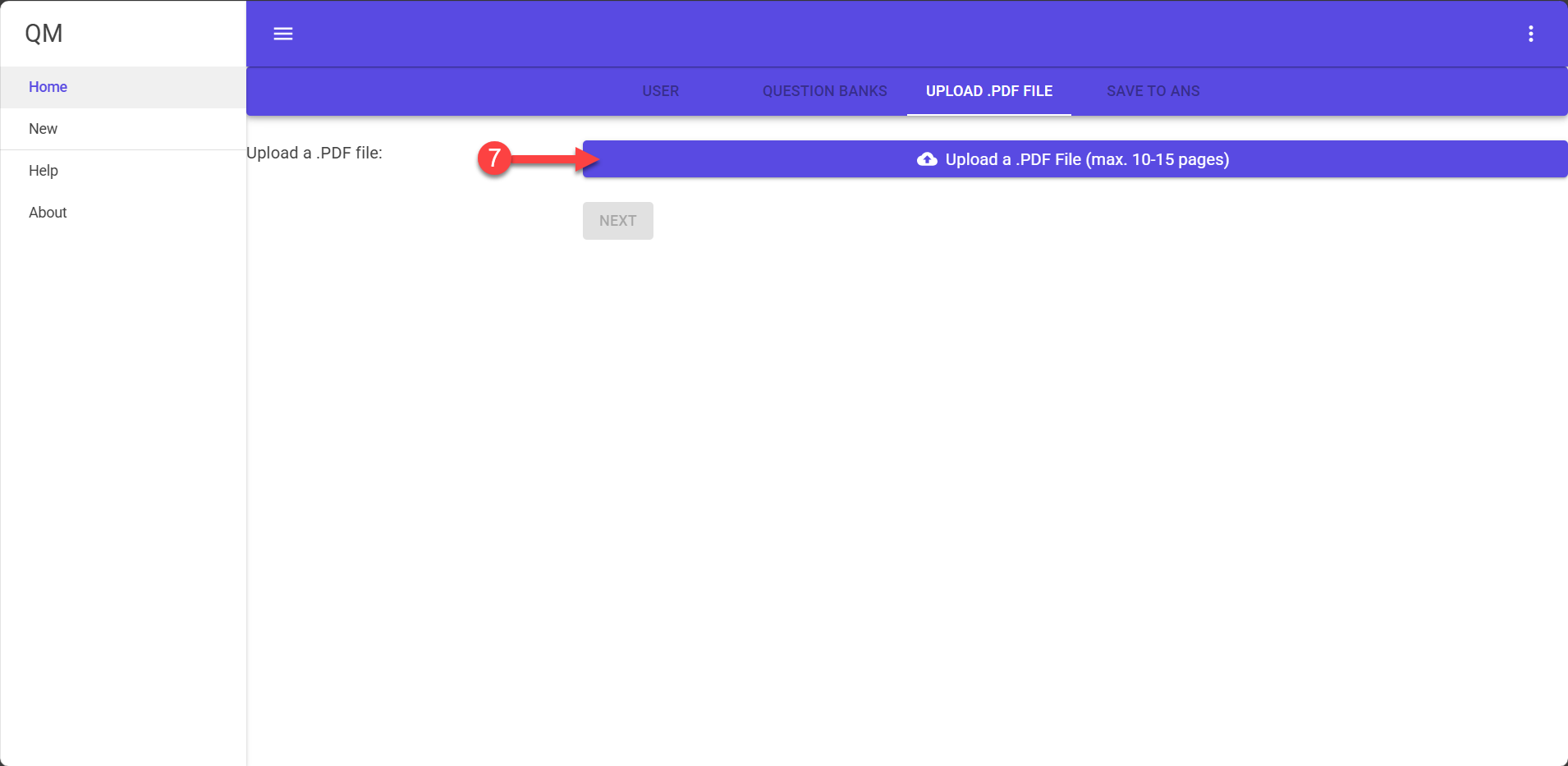 Upload het PDF bestand waaruit je vragen wilt genereren.